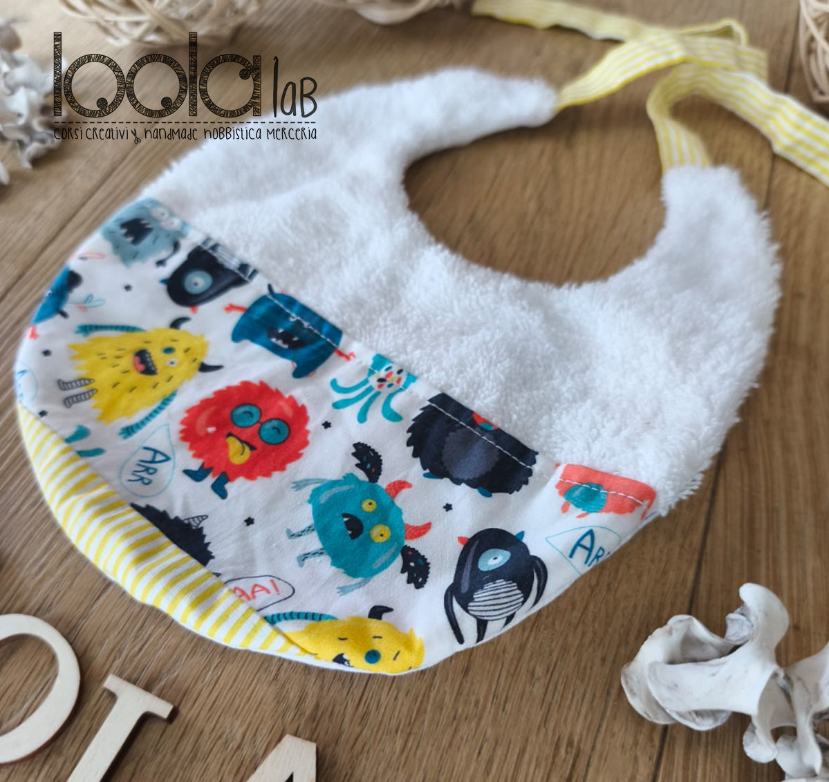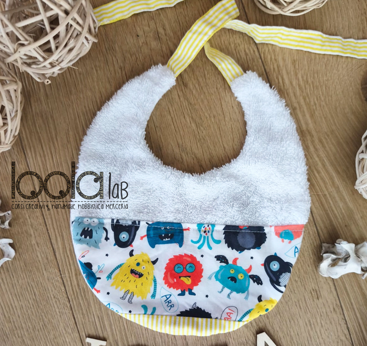 Bavaglino_primi mesi_spugna in cotone colore bianco & cotonino certificato.