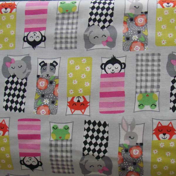 Michael Miller 'Road Trip' Happy Campers Sleeping Animals Grey
