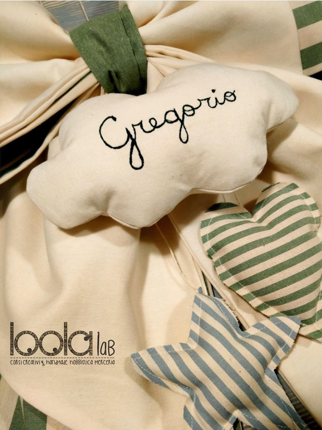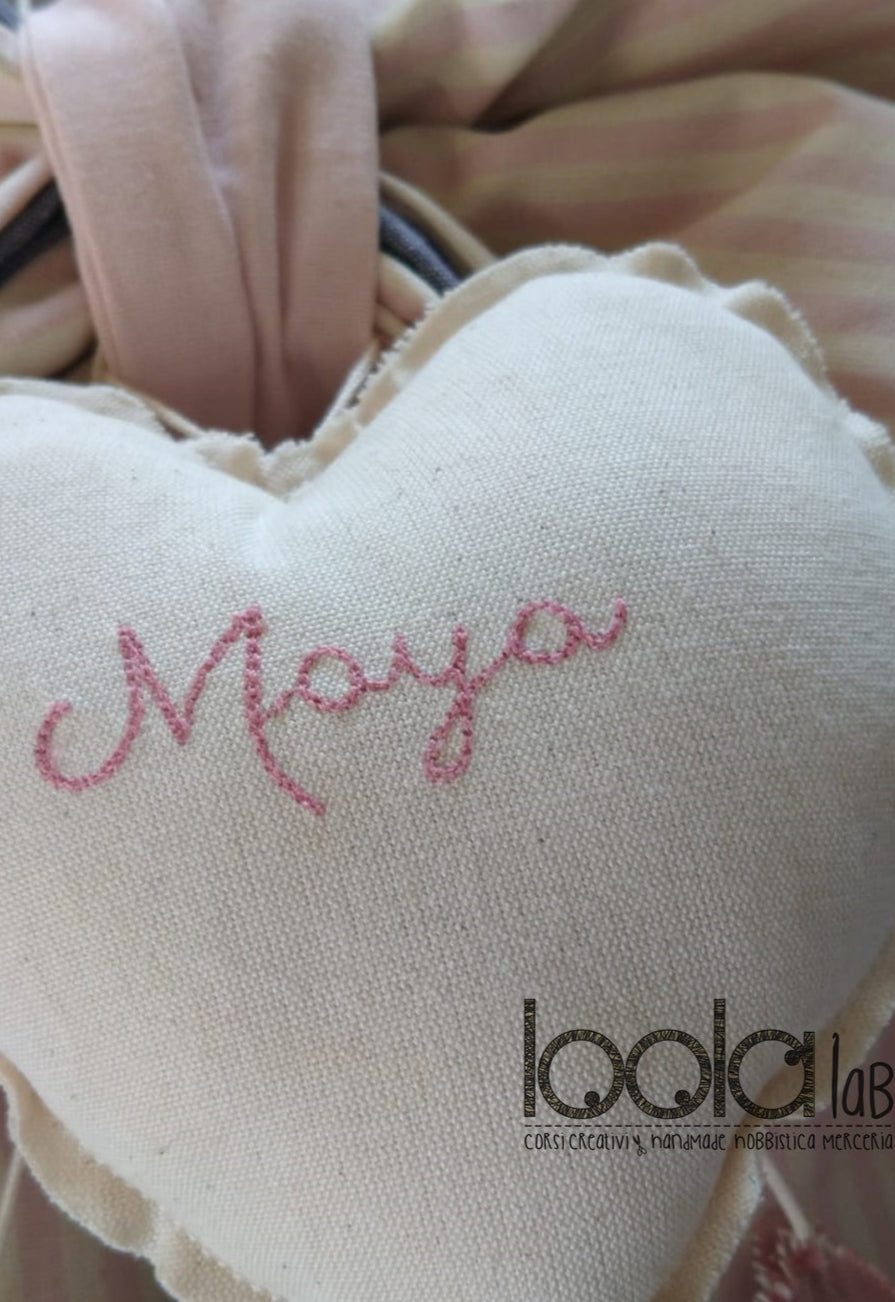 Aggiunta nominativo su ogni pezzo del set con tecnica di free motion